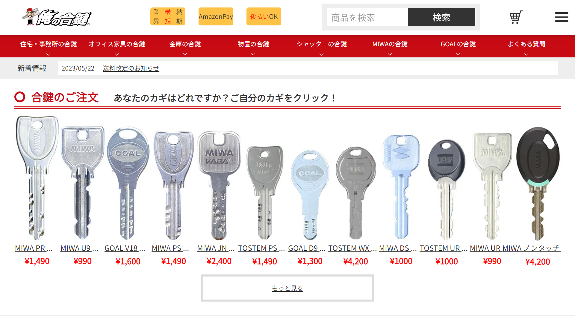 通常のネット注文はもちろん、鍵の写真から合鍵(新カギ)をお作りすることができるのが「俺の合鍵」です。